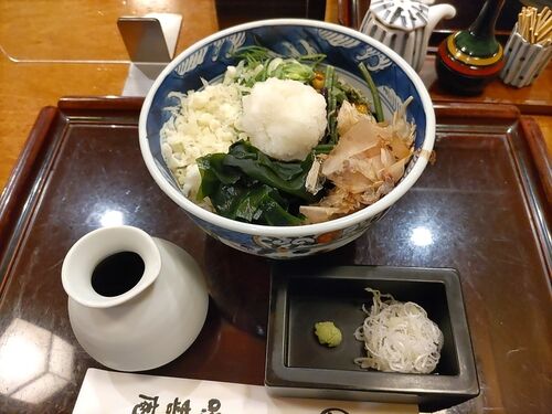 久しぶりにこちらに。前回はお店の定番らしき,まかない丼とそばでしたが,今回は単品メニューからぶっかけそばを発注,1,150円。お店は相席基本で,皆さん承知のうえという感じで違和感ありません。アクリル板衝立があるのも相席許容度が上がっているのかも…